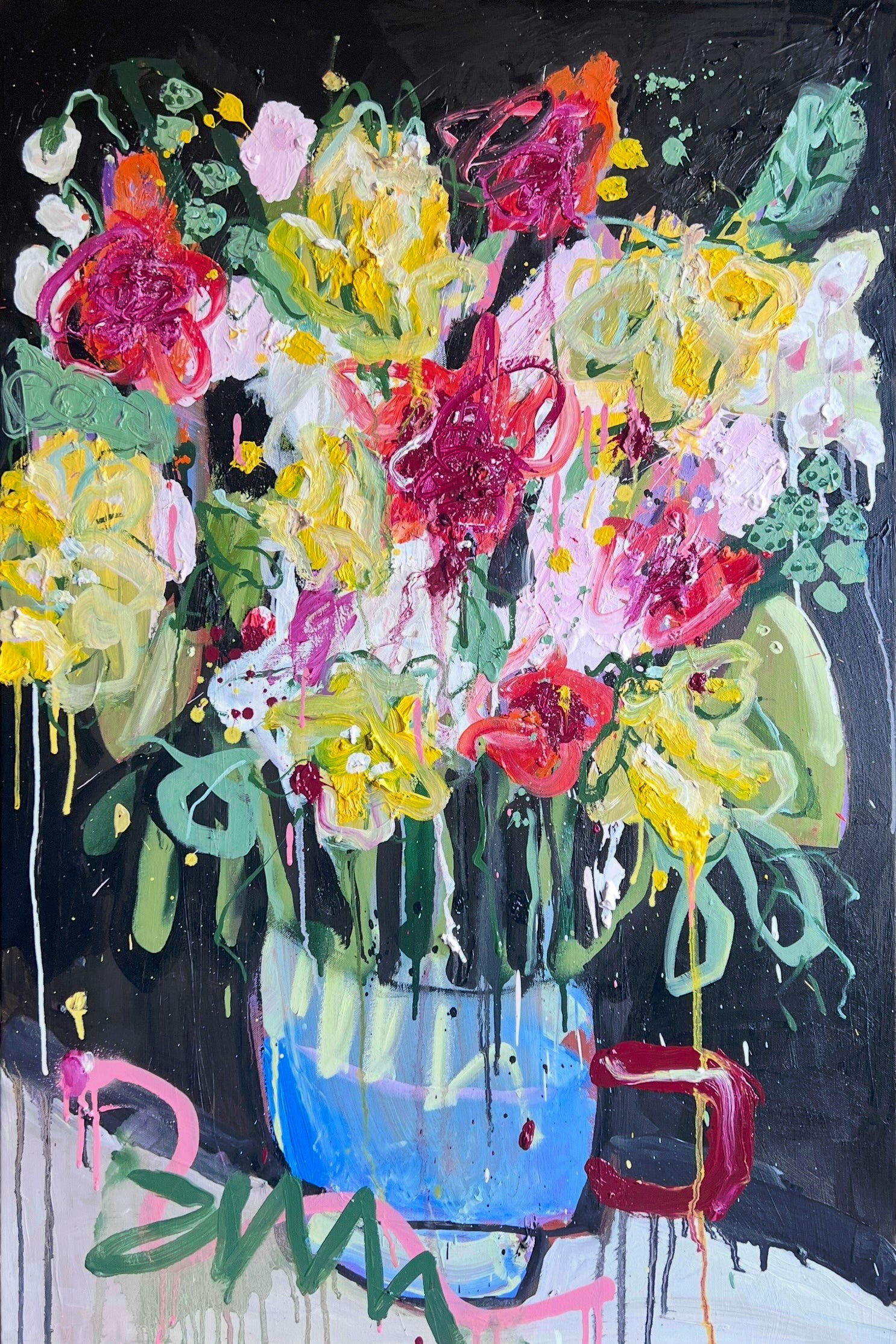 Oil and spray paint on canvas