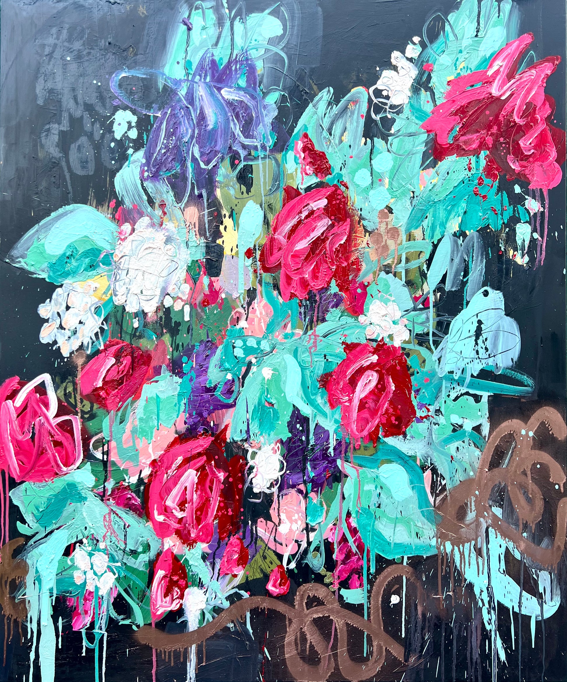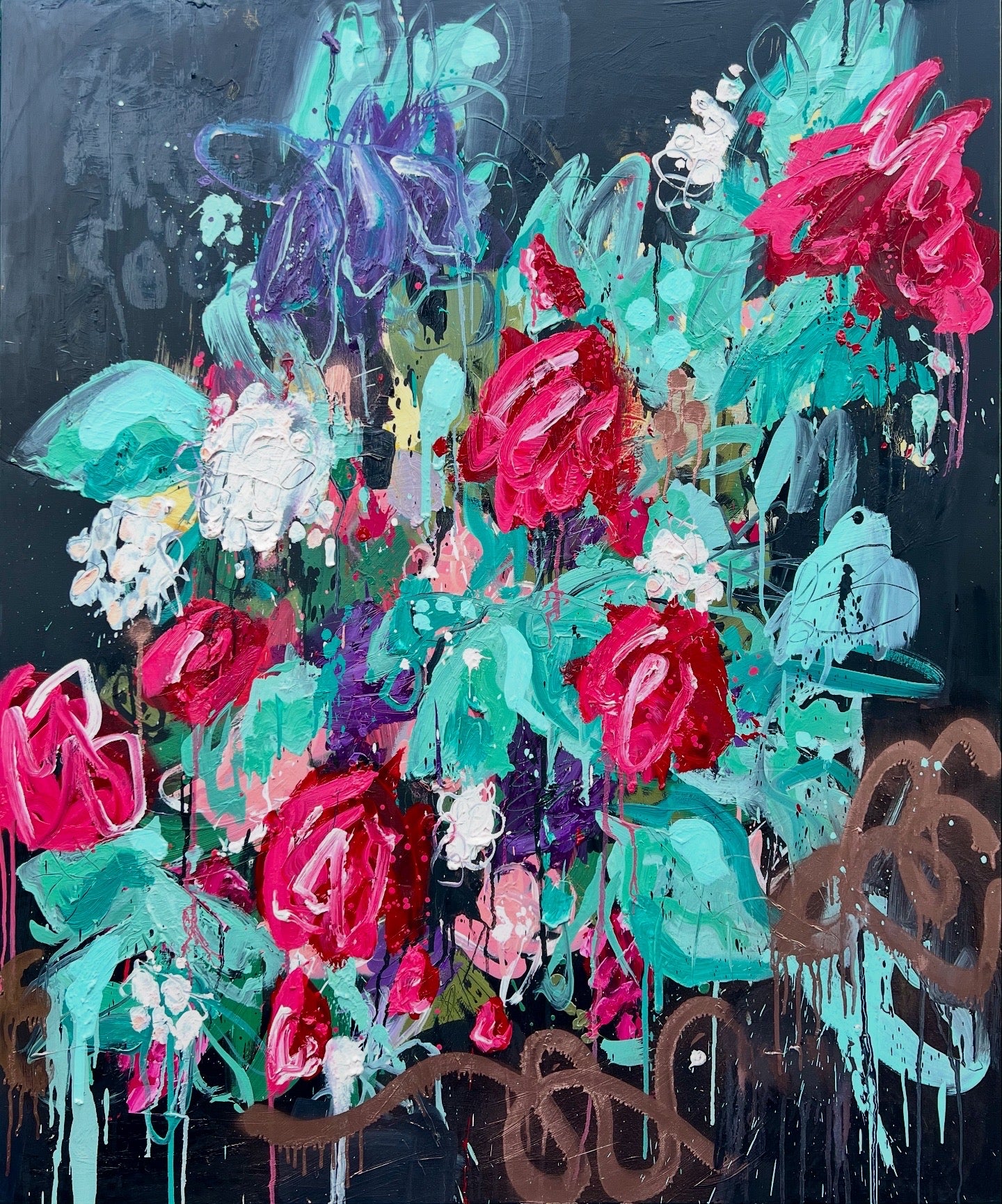 Oil and spray paint on canvas